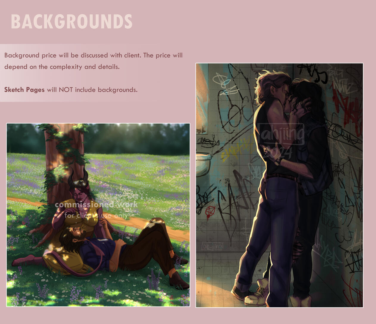 Commissions are for PERSONAL USE ONLY, and clients can post on their social media as long as I am credited. The client cannot use the art for any commercial purpose (including selling prints/merch or making a profit off it in any way). NO redistribution/reselling.